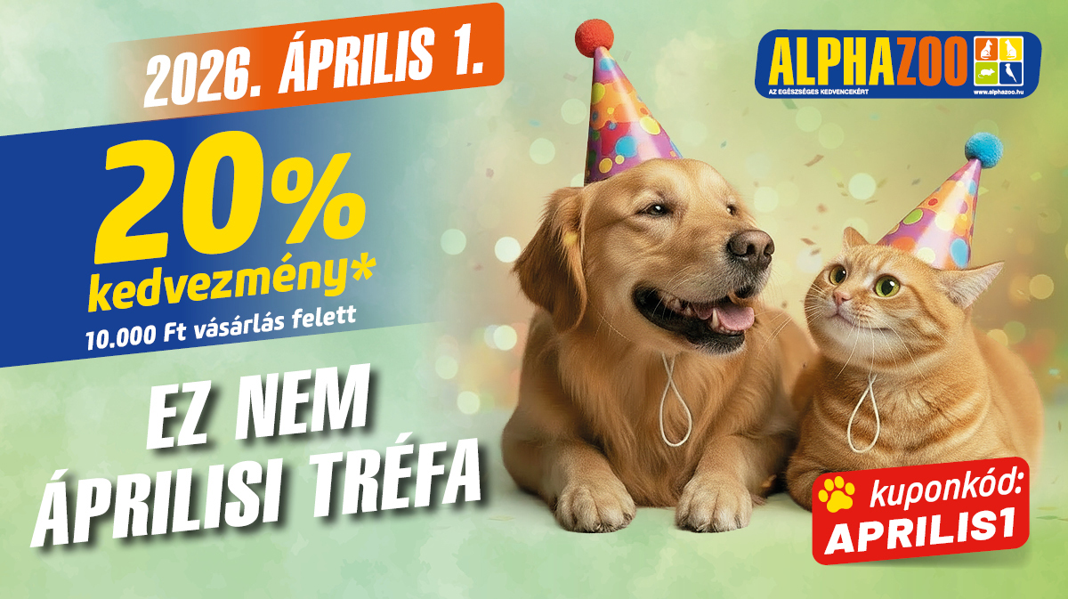 * Az ajánlat kizárólag 2026. április 1-jén érvényes a résztvevő ALPHAZOO áruházakban és a webshopon, minimum 10 000 Ft feletti vásárlás esetén. Csak teljes árú termékekre vonatkozik, más kedvezménnyel nem vonható össze. Nem érvényes árkedvezményes termékekre és Kedvencutalvány vásárlására.